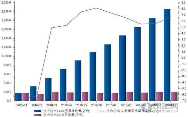 據(jù)前瞻數(shù)據(jù)庫(kù)數(shù)據(jù)顯示,2016年1-11月我國(guó)洗滌機(jī)械出口累計(jì)2055萬(wàn)臺(tái),累計(jì)同比增長(zhǎng)6.7%。2015年12月中旬,美國(guó)家電制造商惠而浦舉起反傾銷(xiāo)大棒,該公司向美國(guó)商務(wù)部和國(guó)際貿(mào)易委員會(huì)提出申請(qǐng),請(qǐng)求對(duì)韓系廠商三星、LG的大容量洗滌機(jī)械產(chǎn)品進(jìn)行反傾銷(xiāo)調(diào)查。值得注意的是,這些洗滌機(jī)械的原產(chǎn)地均是中國(guó)。隨后,美國(guó)商務(wù)部與國(guó)際貿(mào)易委員會(huì)接受惠而浦的申請(qǐng),對(duì)中國(guó)生產(chǎn)的洗滌機(jī)械開(kāi)展了反傾銷(xiāo)調(diào)查。